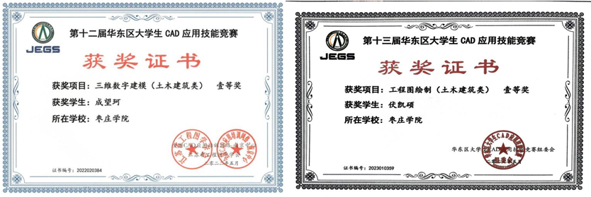 组织承办华东区大学生CAD应用技能竞赛院内选拔赛,选拔优秀学生参加华东区大学生CAD应用技能竞赛,数人获得工程图绘制一等奖、二等奖和三等奖,三维制图一等奖、优秀指导教师等奖项。