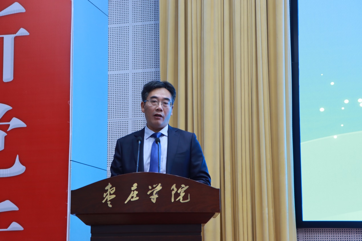 闭幕式上,山东省测绘地理信息学会秘书长刘奇志,校党委委员、统战部部长、beat365正版唯一入口必一院长林勇共同向下一届山东省大学生测量技能大赛承办学校山东农业工程学院授旗。