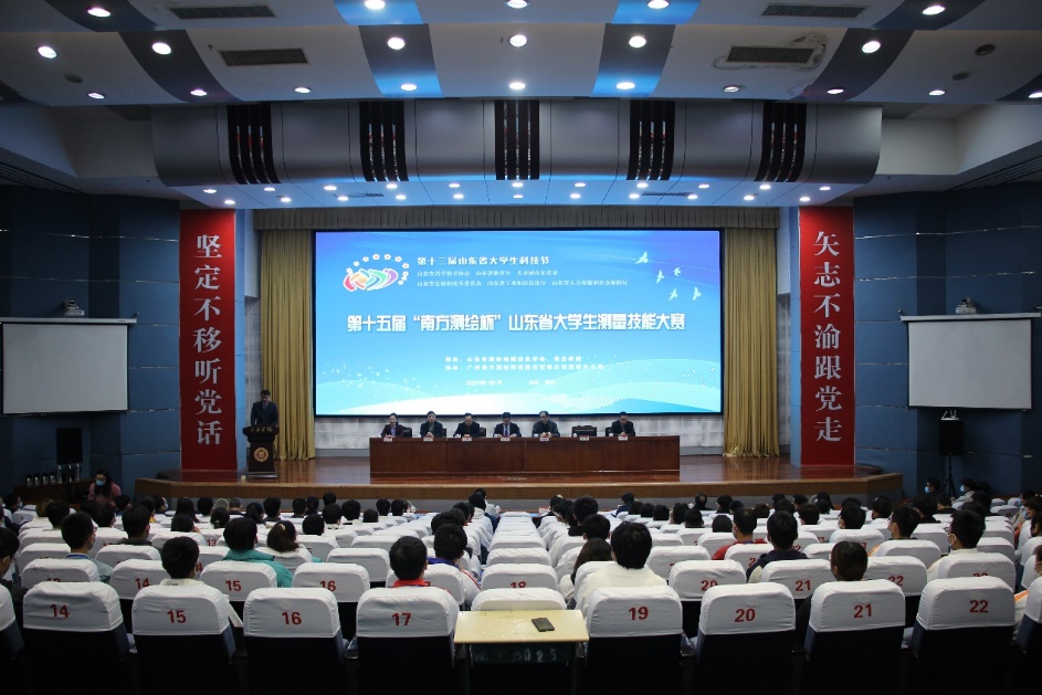 10月23日至24日,第十三届山东省大学生科技节暨第十五届“南方测绘杯”山东省大学生测量技能大赛在beat365官网举行。校党委委员、副校长安涛,山东省测绘地理信息学会 副理事长、山东省国土测绘院 地理信息中心主任于立国,山东省测绘地理信息学会秘书长、山东省国土测绘院党委副书记刘奇志,山东省测绘地理信息学会副秘书长、山东鲁迪测绘有限公司董事长李宗宝,广州南方测绘科技股份有限公司济南分公司总经理成德桂等出席了开幕式。开幕式由beat365正版唯一入口必一党委委员、统战部部长、beat365正版唯一入口必一院长林勇主持。来自中国石油大学、山东科技大学、山东农业大学、山东建筑大学、山东理工大学等省内10所高校的20支队伍百余名师生参加了本次比赛。