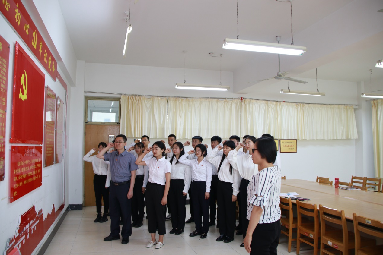 为庆祝中国共产党成立100周年,继承和发扬党的光荣传统,6月23日下午,beat365正版唯一入口必一党总支举行了2021年新发展党员入党宣誓仪式。活动由学院教工一支部组织委员徐鸿飞主持,2名新发展教工党员和18名新发展学生党员参加了宣誓仪式。