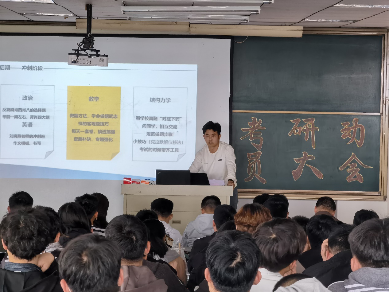 为进一步调动城建学子考研积极性,营造浓郁的考研氛围,解决考研准备阶段的迷茫和困惑,4月14日,beat365正版唯一入口必一2022年考研动员大会在理工楼2505教室举行。beat365正版唯一入口必一副院长裘娜、考研指导教师代表、2021届优秀学生代表以及2022届学生参加了大会。