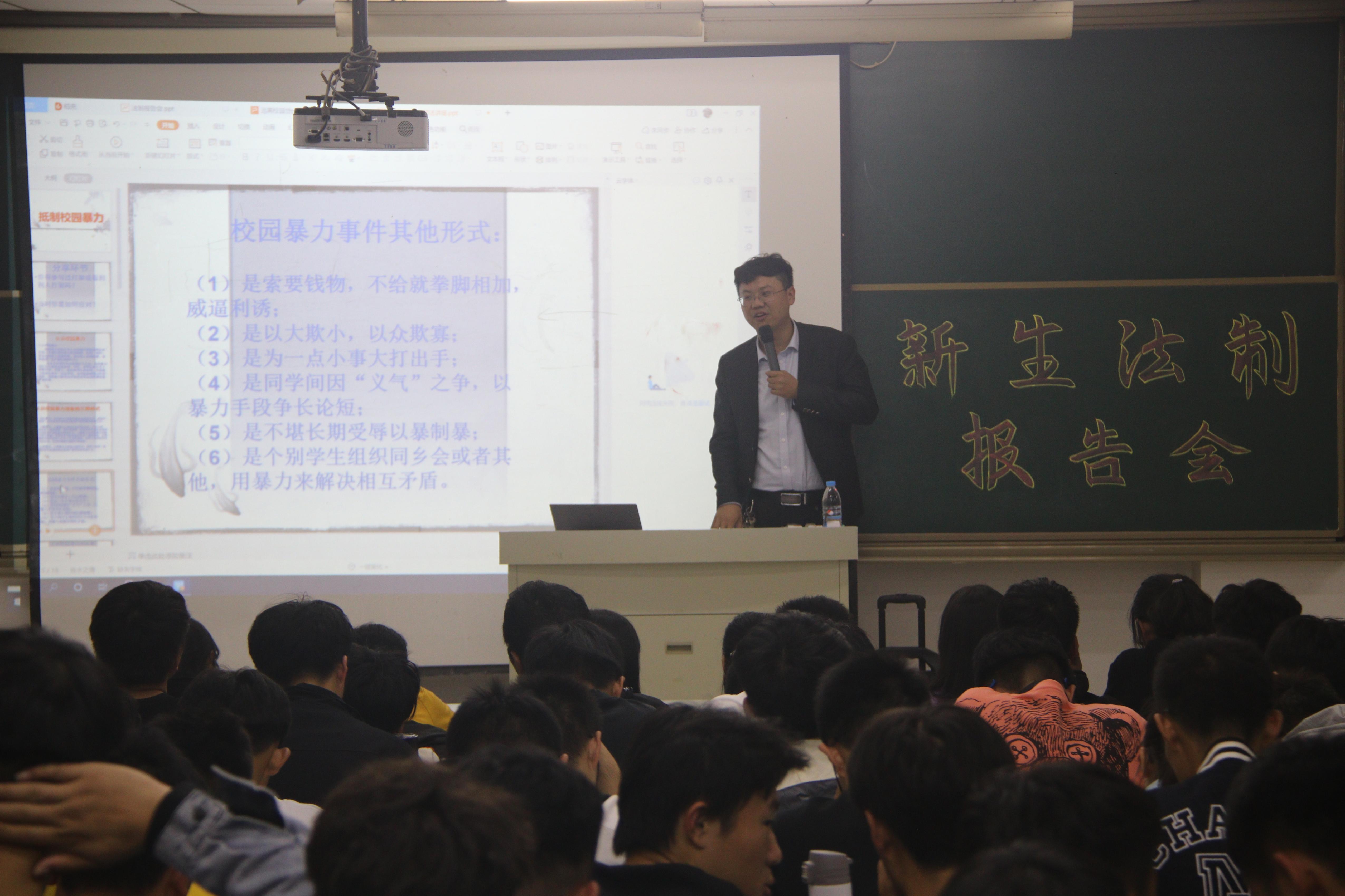 为进一步增强学生的法律意识和安全意识,建设平安校园、和谐校园,10月27日晚7:00,城建学院特邀山东龙头律师事务所董飞律师来校举办法制报告会,beat365官网2020级全体新生现场聆听报告。