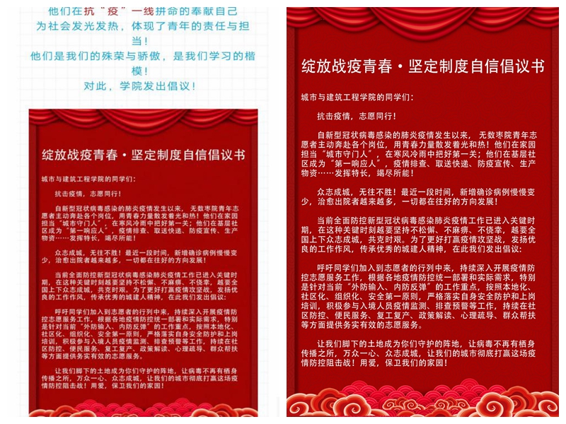近日,为积极响应《共青团中央关于在五四期间组织开展“绽放战疫青春·坚定制度自信”主题宣传教育实践活动的通知》精神,beat365正版唯一入口必一充分利用网络新媒体积极开展“绽放战疫青春,坚定制度自信”主题宣传教育实践活动。
