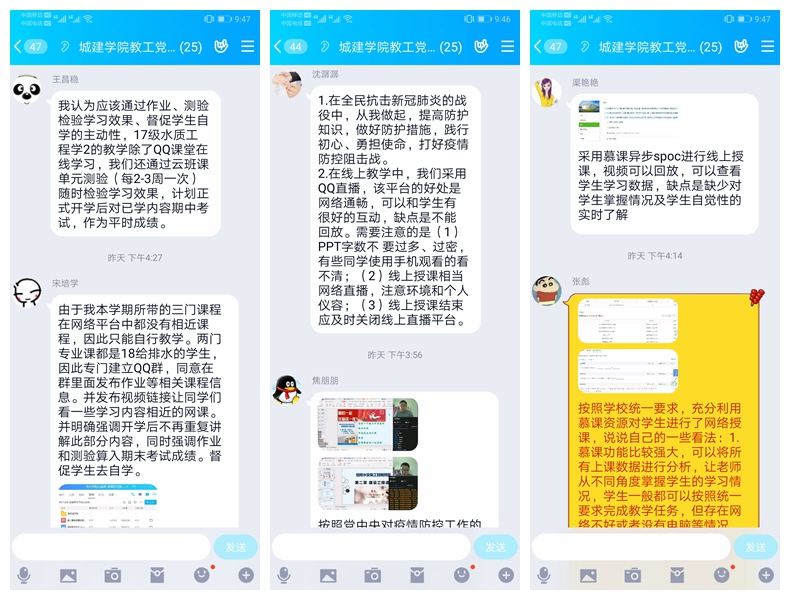图:教工党支部线上主题党日活动党员交流学习感想及线上教学心得