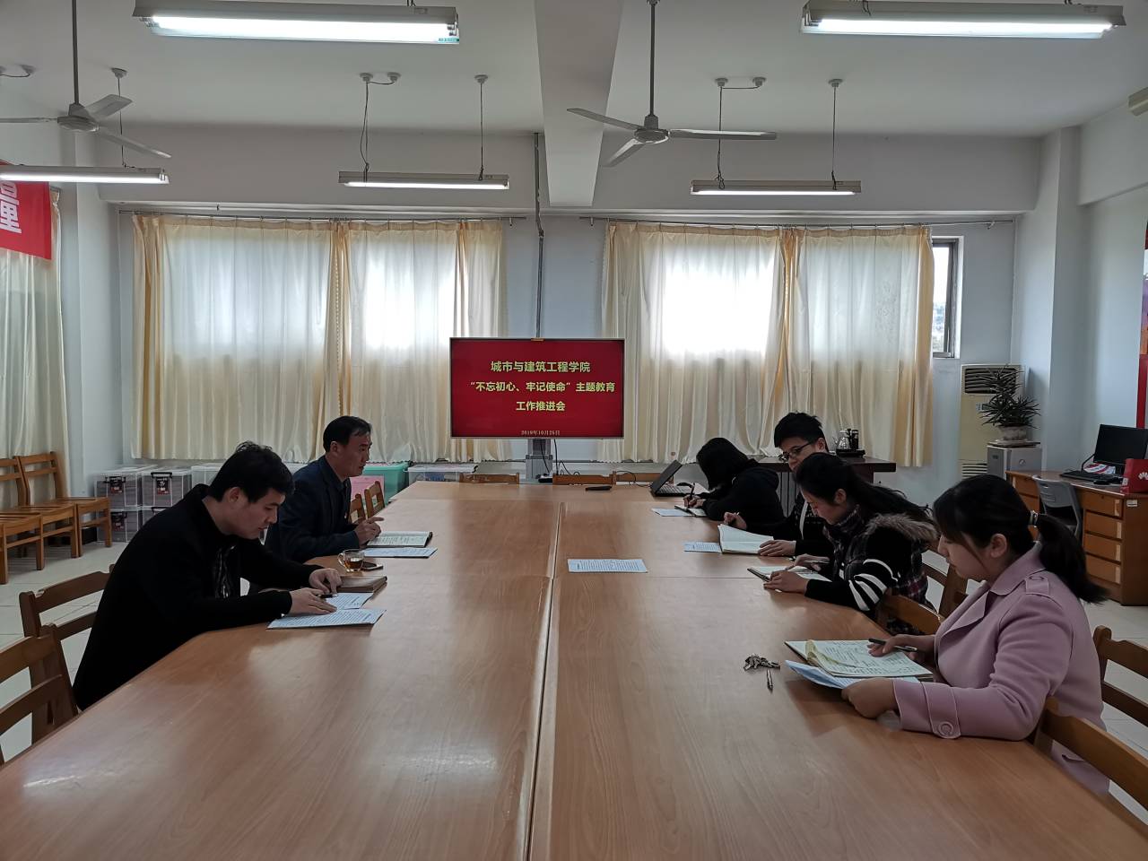 10月25日下午,beat365正版唯一入口必一在理工楼2321室召开“不忘初心、牢记使命”主题教育工作推进会。党总支全体委员参加会议,会议由党总支书记李振清主持。