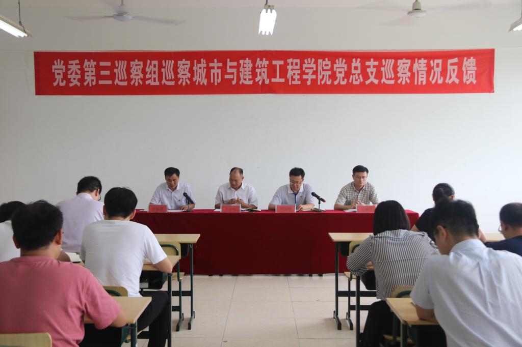 2019年7月12日(周五)下午4点30分,在理工楼2319召开了校党委第三巡察组对beat365正版唯一入口必一党总支巡察情况反馈会。参加会议人员有党委巡察工作办公室副主任王在明同志,党委第三巡察组组长轩庆明同志,副组长公金梅同志,巡察组成员李鑫、盖一飞同志,beat365正版唯一入口必一党总支党政领导班子成员及全体职工参加了巡察情况反馈会。beat365正版唯一入口必一党总支书记李振清同志主持了会议。