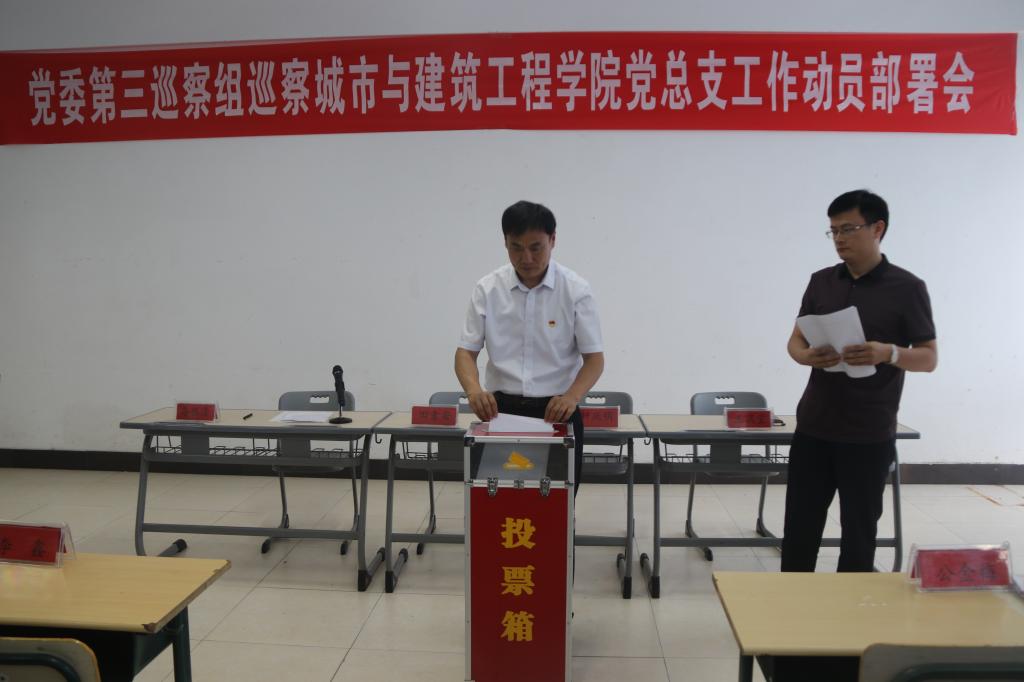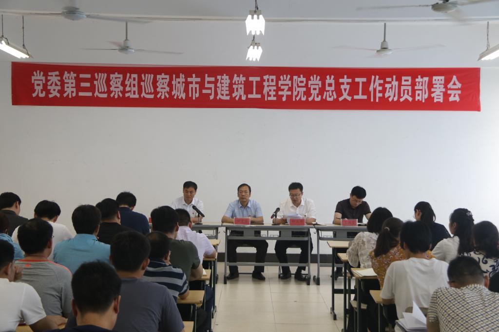 党委第三巡察组组长轩庆明同志代表巡察组对巡察beat365正版唯一入口必一党总支工作进行动员部署,提出要准确把握巡察工作的内容和方式,对执行党章和其他党内法规,遵守党的纪律,落实全面从严治党和党风廉政建设“两个责任”等情况进行巡察;城建学院党政和相关人员要积极配合巡察工作,认真准备相关档案材料,客观反映问题。校党委巡察工作领导小组副组长田素安同志强调要深刻领会此次巡察工作的意义,严肃巡察工作纪律,正确履行巡察职责,推动校内巡察工作顺利开展。