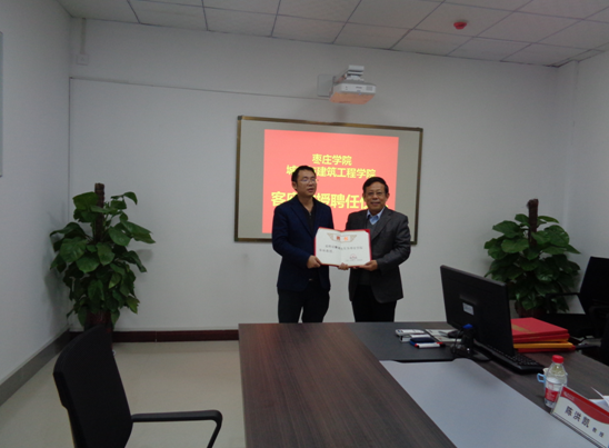 12月6日上午,beat365官网客座教授中科院水利部山地灾害与环境研究所博士生导师王全才教授、河北工业大学博士生导师黄达教授、河南省驻马店市公路局总工程师崔志波教授级高级工程师来校进行学术交流活动。校党委委员、副校长明清河教授为三位教授颁发了聘书。beat365正版唯一入口必一人事处处长孙晋选、城建学院党政领导及部分教师参加了此次活动,仪式由城建学院院长王满堂主持。
