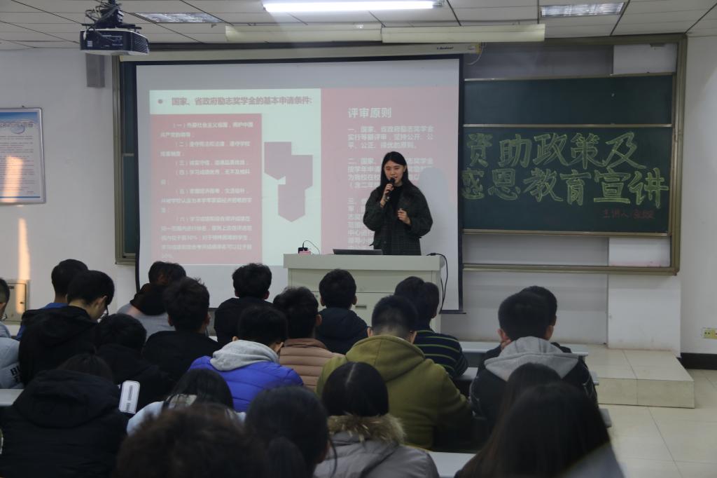 为让广大师生更加了解资助、奖助政策,城建学院特于11月21日晚六点半在理工楼2505举办资助政策及感恩教育宣讲,主讲老师张璇,2018全体学生参加了此次讲座。