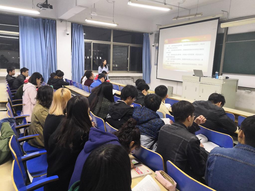 11月14日晚上,张璇老师在理工楼2518为本学期全体入党积极分子详细讲解了中国共产党的组织、纪律和作风。