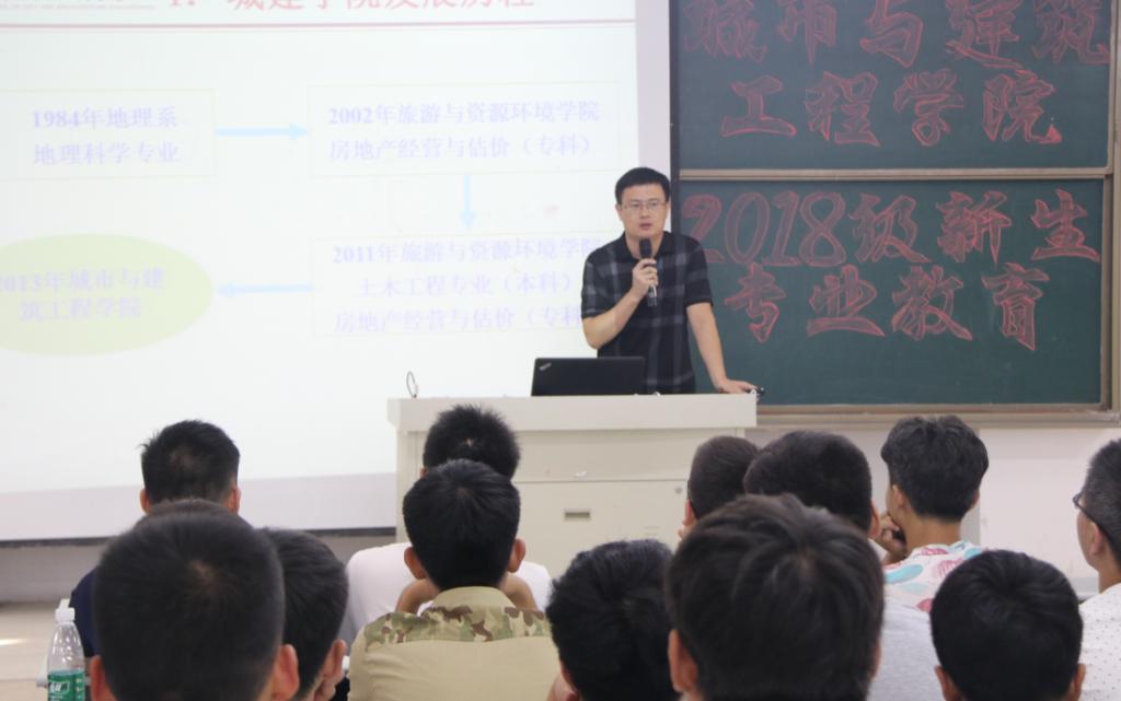 9月10号下午,城建学院在理工楼505教室举行2018级新生第一次专题教育报告会,院长王满堂、建筑工程教研室主任和市政与环境工程教研室主任参加了此次会议。