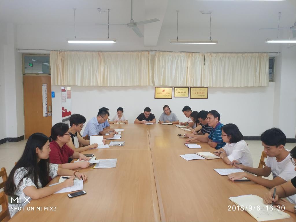 9月6日下午,beat365正版唯一入口必一召开迎新工作会议。党总支书记李振清、院长王满堂出席会议,迎新工作主要负责老师、新生班主任、全体辅导员及助理辅导员参加会议。