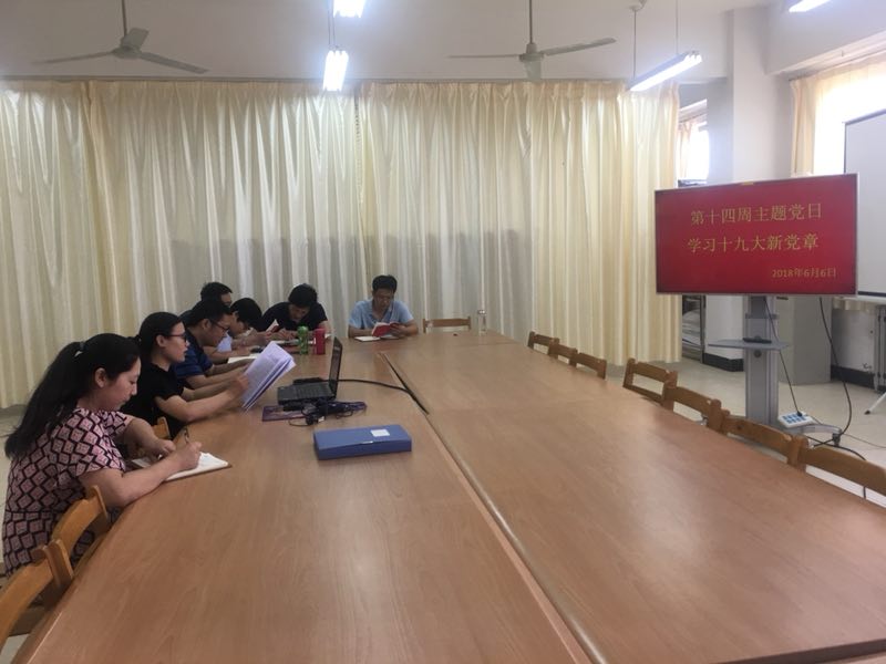 本次主题党日活动紧紧围绕“学习十九大新党章,为学校硕士学位授予单位立项建设做贡献”展开。会上,结合前期学习进展,各党支部书记带领党员同志重点学习了党的十九大对党章做重大修改的内容,并对新修订的《中国共产党章程》进行了全面系统的学习。各位党员同志一致认为,新党章是一部更加完善、更加符合时代要求的党章;对我们每一位党员来说,党章的修改也给我们提出了更高的要求,学习新党章、践行新要求是每个党员的义务。