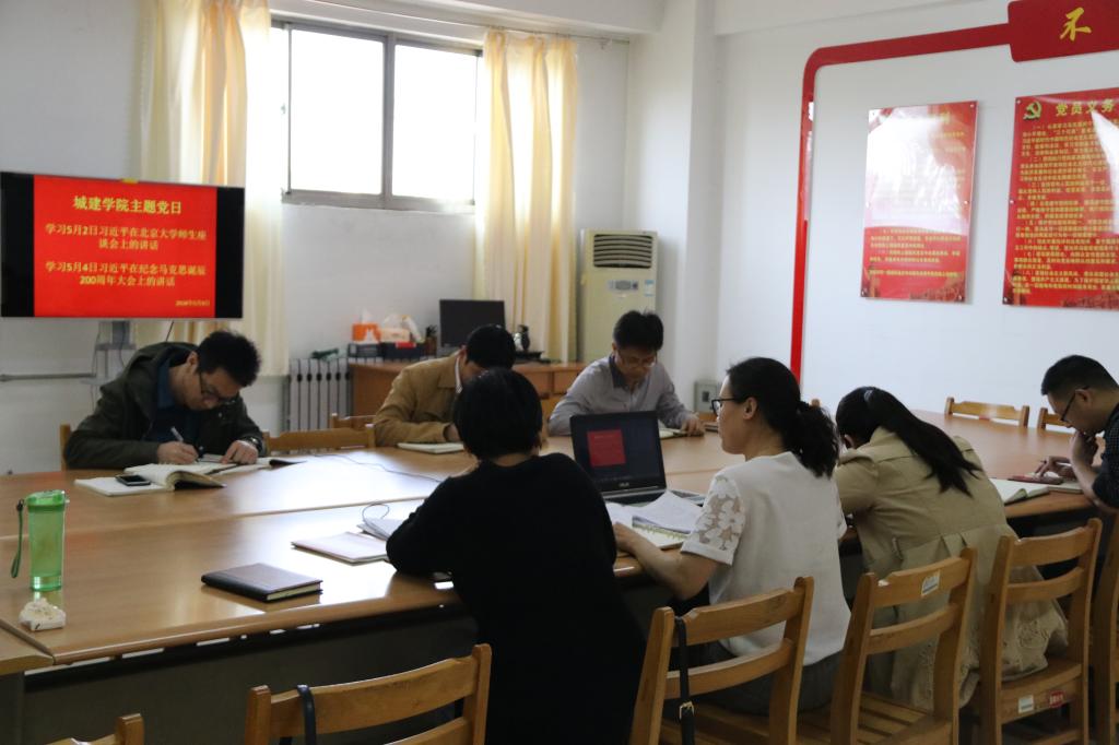 近日,城建学院党总支组织学院理论学习中心组及所辖各支部利用“双周三主题党日”组织开展学习习近平总书记在北大师生座谈会和在纪念马克思诞辰200周年大会上的重要讲话精神。