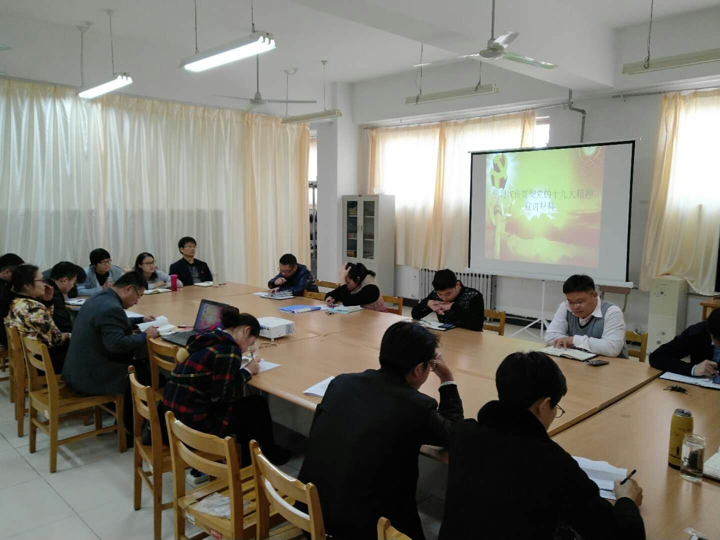 11月8日,城建学院召开主题党日活动,张翠梅同志主持学习了十九大讲话精神,具体学习了习近平代表第十八届中央委员会向党的十九大所作的报告、党的十九大通过的《中国共产党章程(修正案)》以及学习宣传贯彻党的十九大精神宣讲材料。党员教师李天鹏、李晓明、卢明师等同志相继讨论发言,李天鹏同志说到:通过对《中国共产党章程(修正案)》和学习宣传贯彻党的十九大精神宣讲材料的学习,对本人的启发很大,对本人今后的工作、学习及生活等各个方面都将产生深远影响。主要体现在以下几个方面:1. 信仰,党的十九大明确指出:中国共产党人的初心和使命是为中国人民谋幸福,为中国民族谋复兴。这既是我们的初心和使命,更是我们的坚不可摧的信仰。2. 责任,全面学习及深入领会习近平新时代中国特色社会主义思想,是我们作为一线教育工作者不可推卸的责任,所以我们有义务让十九大精神进教材、进课堂、进头脑。3. 创新