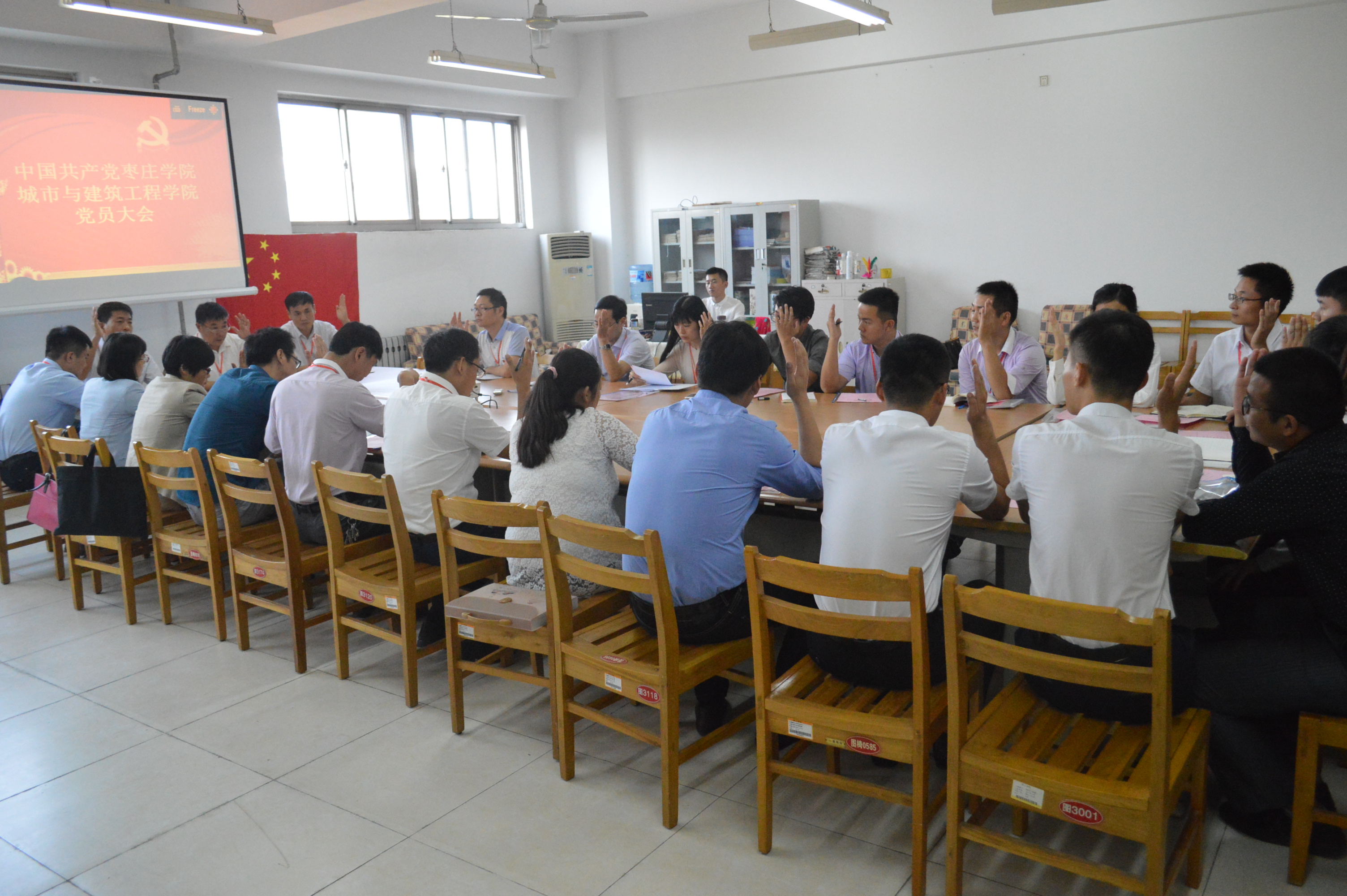 城建学院全体党员大会于9月21日下午2:30在理工楼2321室召开。大会进行了中共beat365正版唯一入口必一beat365正版唯一入口必一总支部新一届委员会换届选举工作。