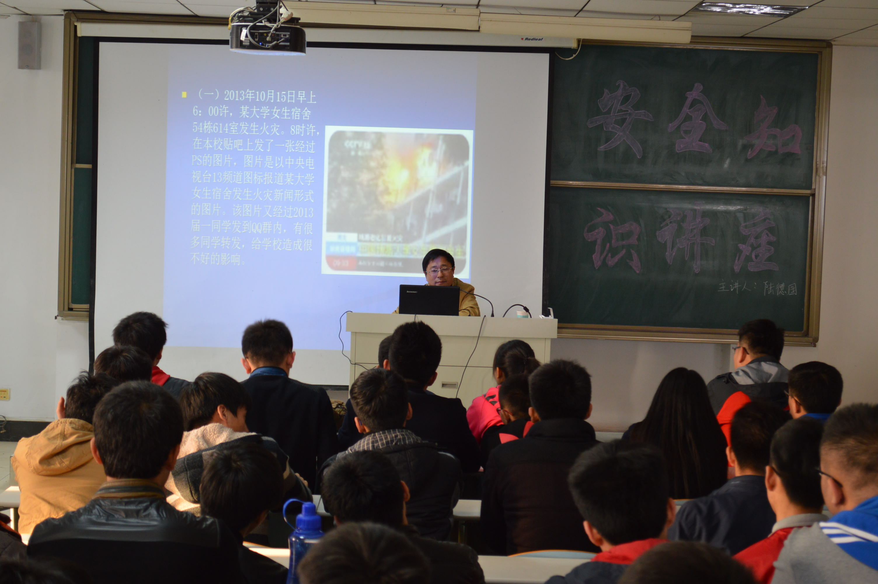 通过此次安全知识讲座,使同学们进一步增强了安全防范意识,掌握了必要的安全防范技能,为营造文明安全和谐的校园环境起到了良好的促进作用。