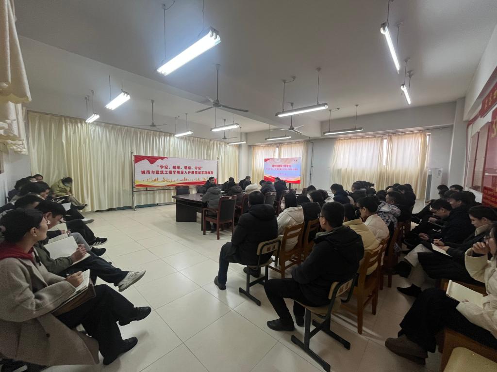 学院党委书记查明全面传达了学校2025年春季干部培训班会议精神,带领全体教职工认真学习了校党委书记高峰题为《抢抓机遇 攻坚突破 奋力谱写国内一流应用型大学建设新篇章》的讲话精神。查明就做好新学期重点工作提出了三点要求:一是紧密围绕学校“两升一创”战略规划,紧扣“内涵提升年”目标任务,以高质量党建推动学院高质量发展。二是聚焦重点工作,整合各类资源,全力推动硕士点申报工作。三是坚持以学生为中心,深化学风建设,营造良好育人环境,全面提升人才培养质量。