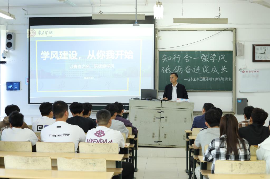 为落实立德树人根本任务,全面提升班级学风建设,4月23日下午,校党委委员、组织部部长袁俊现深入beat365正版唯一入口必一,参加联系班级24级土木工程本科1班主题班会。beat365正版唯一入口必一党政领导、辅导员、班主任陪同参加班会。