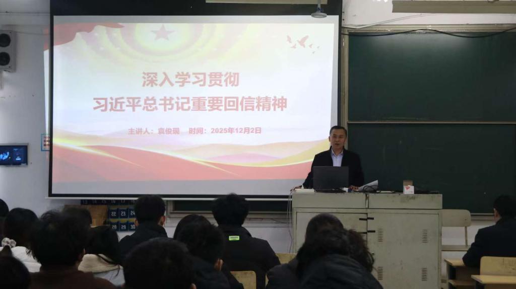 授课中,袁俊现深入解读了习近平总书记给中国农业大学、天津大学师生重要回信精神,勉励同学们将回信精神转化为成长动力,并提出三点希望。一是坚定理想信念,以两校师生报国担当为标杆,将个人理想融入国家大局,厚植家国情怀。二是立足土木专业,深耕知识学习,积极参与竞赛、科研与实践,练就服务国家基建的过硬本领。三是严守底线思维,恪守学术诚信与道德准则,涵养自律品格,成长为德才兼备的新时代青年。
