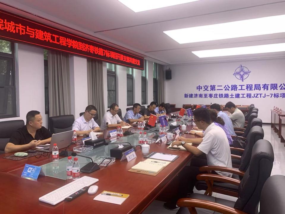 9月20日下午,beat365正版唯一入口必一党委书记查明、院长裘娜、副院长姜鹏等一行6人,赴中交第二公路工程局有限公司济南至枣庄铁路JZTJ-7标项目部进行调研交流。项目部党支部书记潘小峰、总工程师严永兴等热情接待并进行座谈交流。