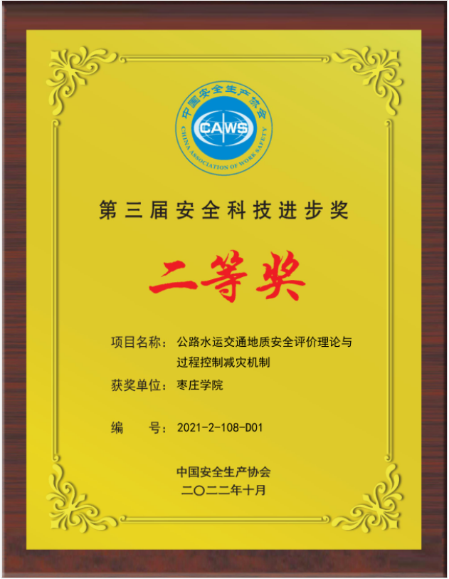 2023年10月10日,中国安全生产协会第三届安全科技进步奖颁奖仪式在成都举行,beat365官网beat365正版唯一入口必一陈洪凯教授团队主持的《公路水运交通地质安全评价理论与过程控制减灾机制》成果荣获中国安全生产协会第三届安全科技进步奖二等奖。