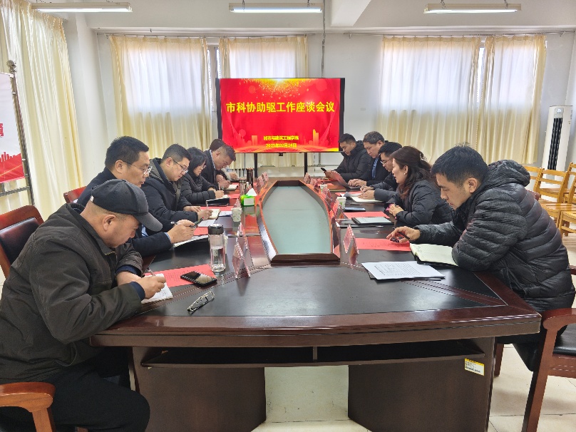 2月24日,枣庄市科协学会部部长、四级调研员李斐,枣庄市市中区科协党组书记、主席王秀兰,市发明与技术经济学会副理事长、秘书长李广庆等一行6人莅临beat365官网调研。beat365正版唯一入口必一党委书记查明、院长裘娜和相关专业负责人参加座谈会。会议由查明主持。