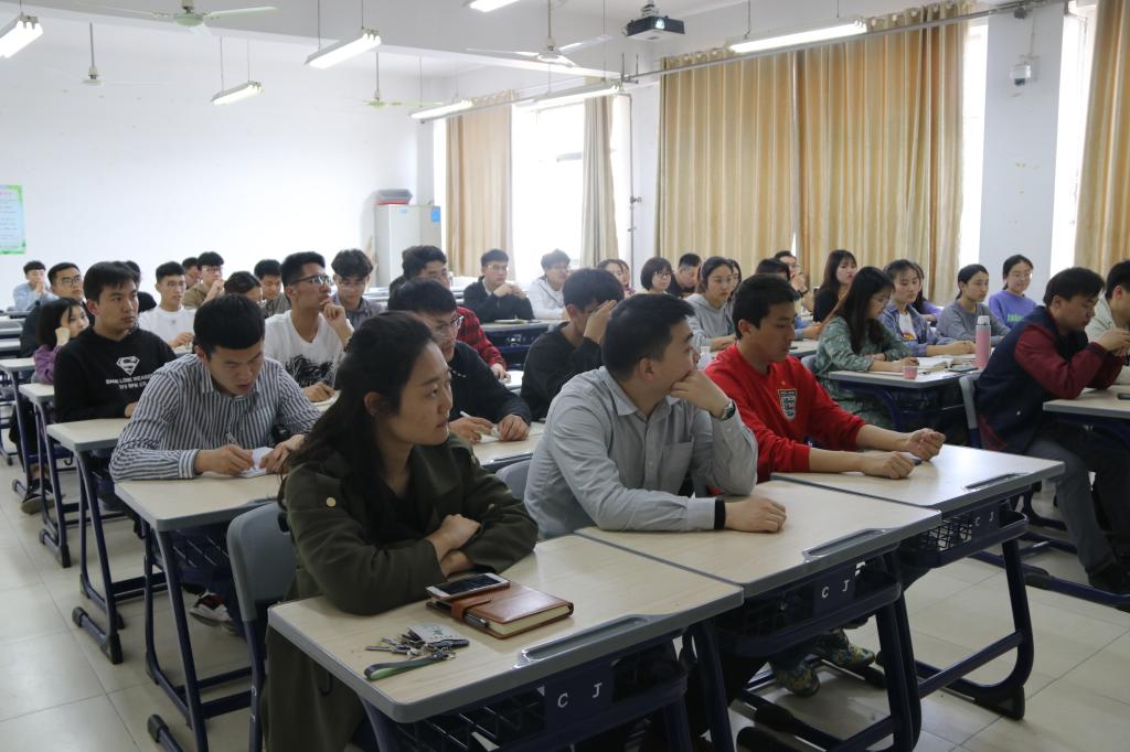 在经验交流环节,2019届考研优秀代表分别从选取专业和院校、获取考研信息、制定复习计划、考前心态调整等方面分享了个人经验,并特别强调了坚持不懈的重要性。经验分享后,部分同学针对疑问进行了提问,专任老师和优秀代表进行了认真解答。
