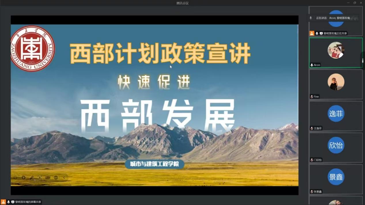此次西部计划线上政策宣讲的成功举办不仅让更多的青年学子了解了西部计划的相关政策和精神内涵,也激发了他们投身西部建设、服务国家发展的热情和动力。学院将持续开展西部计划宣传和分享活动,鼓励更多优秀学子能够顺利奔赴西部基层,绽放青春光彩。