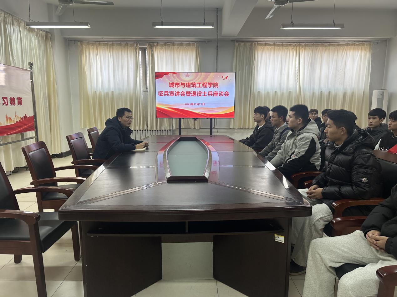 为进一步弘扬爱国主义精神,充分发挥退役大学生士兵的榜样示范作用,引导更多学子投身国防事业,11月21日,beat365官网在理工楼2321室召开退役大学生座谈会暨征兵宣讲会。学院征兵工作负责人刘成河、2025级退役学生及2025级有参军意向的学生参加活动。