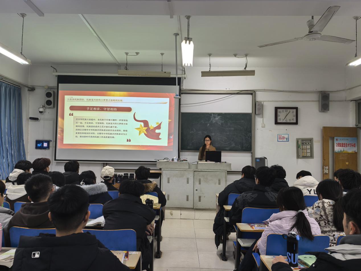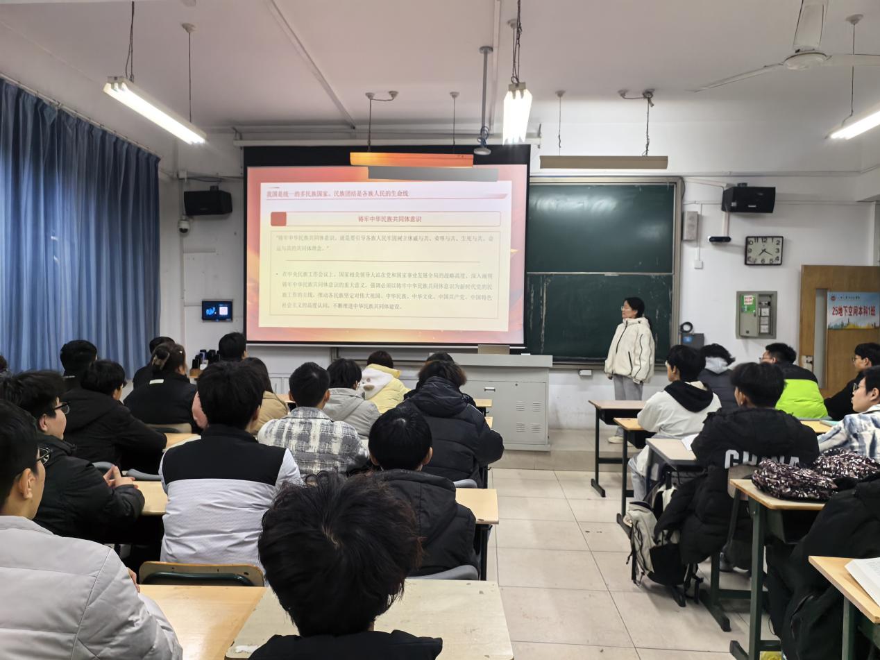 活动中,各班团支书通过PPT展示,系统阐释了铸牢中华民族共同体意识的深刻内涵与时代价值,并号召全体同学:“要像爱护眼睛一样珍视民族团结,将个人理想融入民族复兴的伟大征程!”这一倡议有效激发了同学们的使命感和责任感。