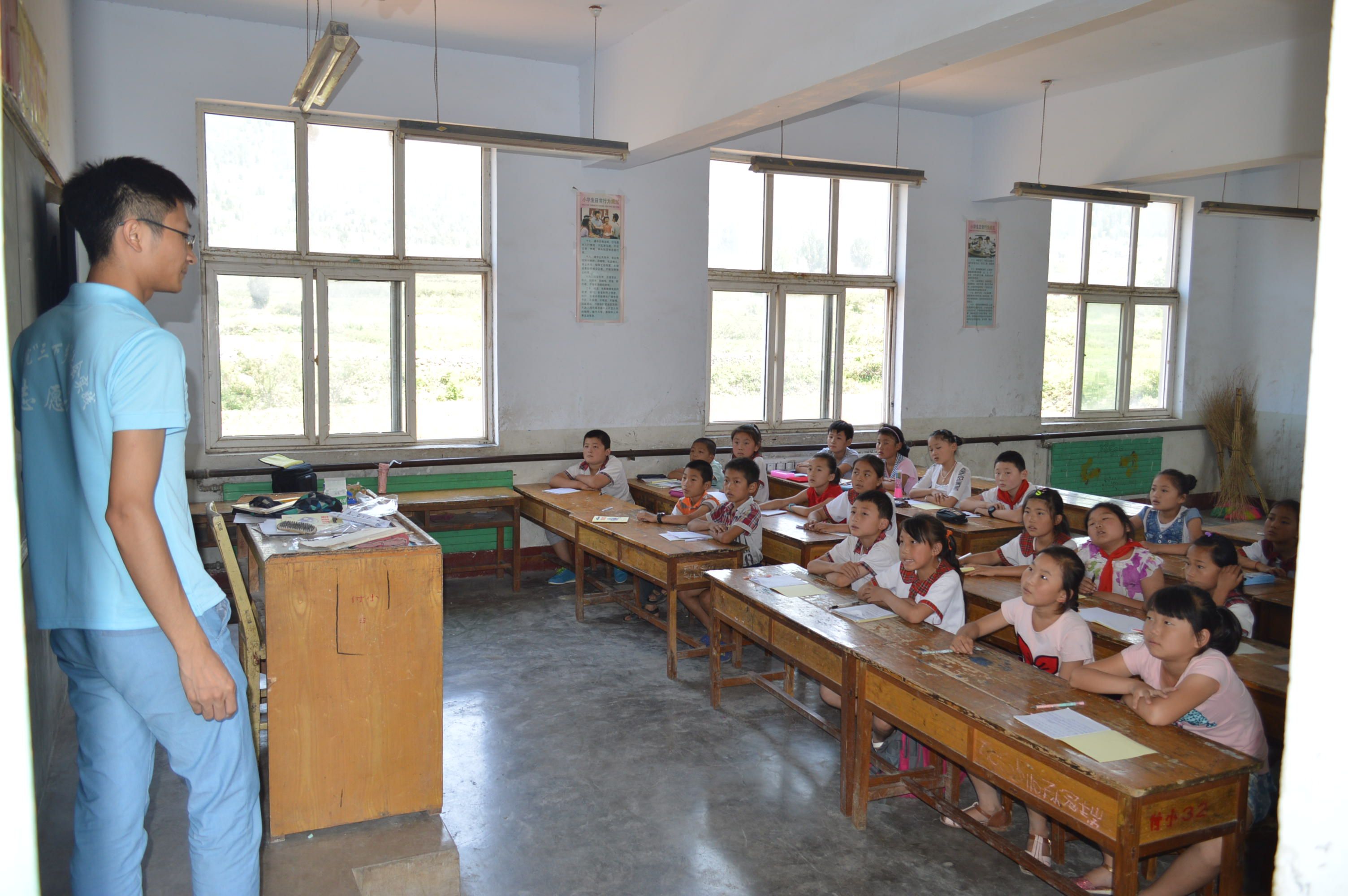 志愿者正在为小学生上课