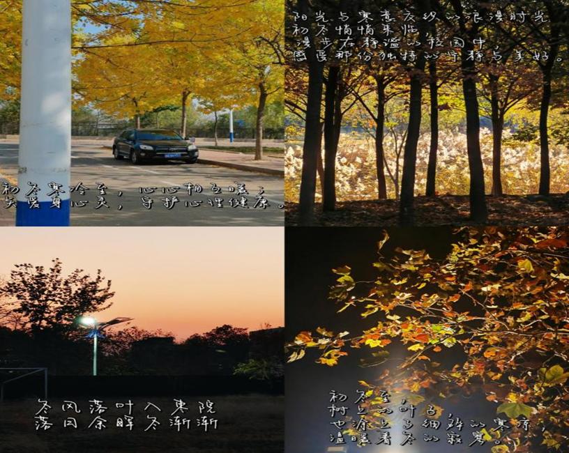 初冬的脚步如约而至,看似枯寂的时节,也有一番意趣盎然。为发现冬季的美好,激发同学们积极向上的乐观心态,在寒冷的冬季为同学们营造出温馨和谐的校园氛围。beat365正版唯一入口必一自律会心理健康部于2023年11月24日举办了“岁寒霜雪至,共迎初冬时”主题心理健康小贴士活动,鼓励同学们积极感受冬日的美好,将心中所感融入图片文字,传递温暖与美好。