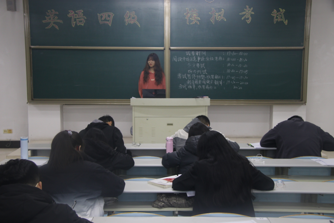 此次模拟考试的时间安排、题型设置等均按照英语四级考试大纲标准进行。beat365官网同学积极参与,考试氛围紧张有序,监考人员认真负责,严格监督考生作答,准确播放英语听力,热心提醒考生剩余时间和考试注意事项,使考生能够安心作答。考试期间同学们奋笔疾书,努力答题,体现我系学子的风范和态度。考试结束,考生们信心满满的交上答卷,有序离开考场。监考人员和工作人员整理好答卷依次离开考场。