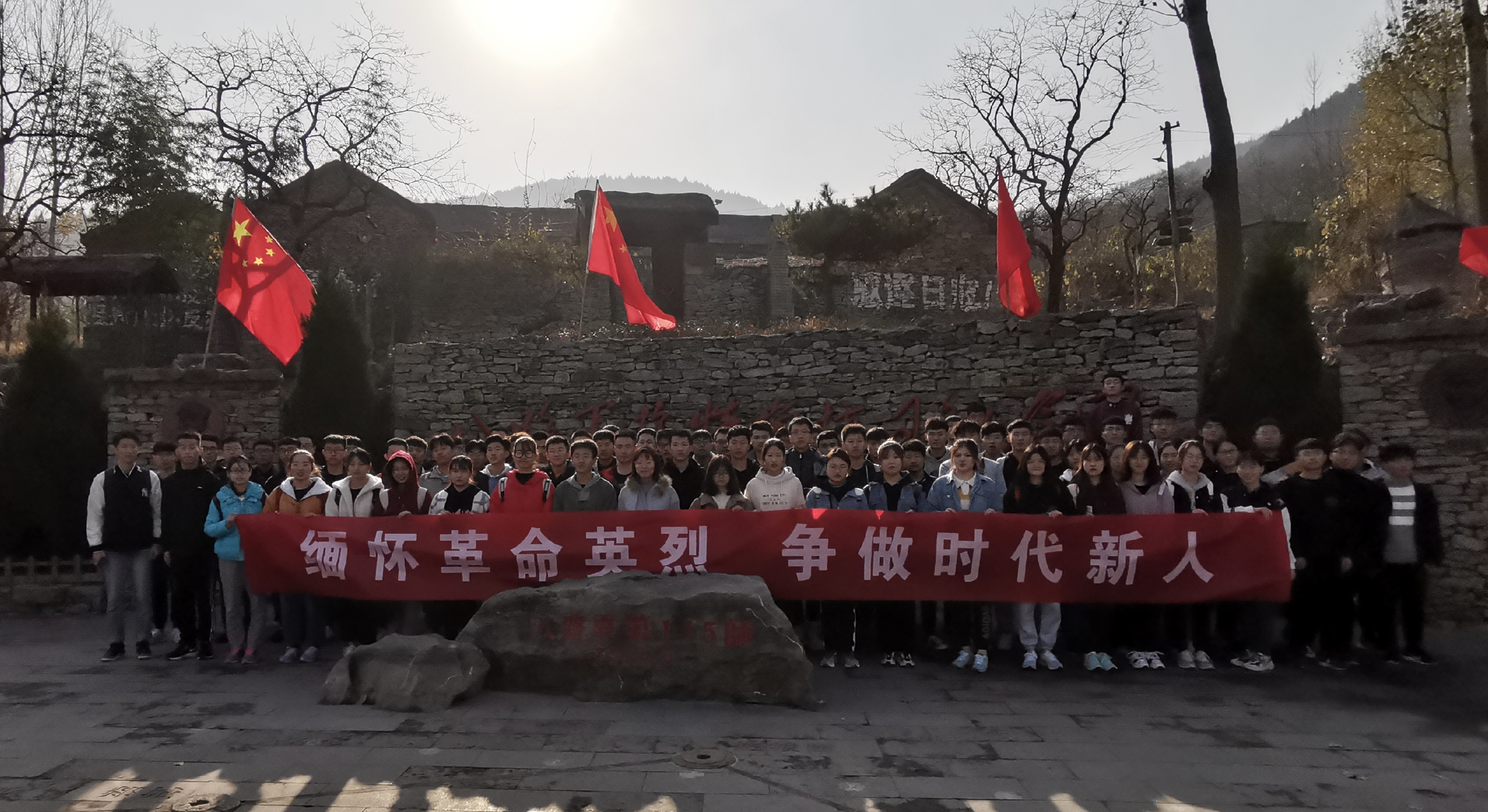 为缅怀革命先烈,弘扬爱国主义精神,11月22日,beat365正版唯一入口必一团总支利用2018级土木工程专业赴抱犊崮工程地质实习的机会,组织团员学生到八路军抱犊崮抗日纪念园开展主题团日活动。全体团员集体缅怀革命先烈,学习先烈精神,引导广大青年继承五四精神,坚定理想信念。