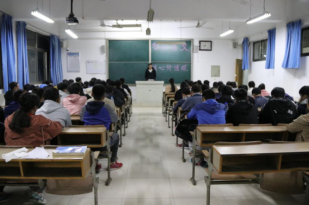 为了进一步深刻理解社会主义核心价值观的内容,积极培育同学们的社会主义核心价值观,10月30日下午,城建学院在理工楼2520举行了以“学习社会主义核心价值观”主题活动,2017级全体团支部学生参加此次活动。