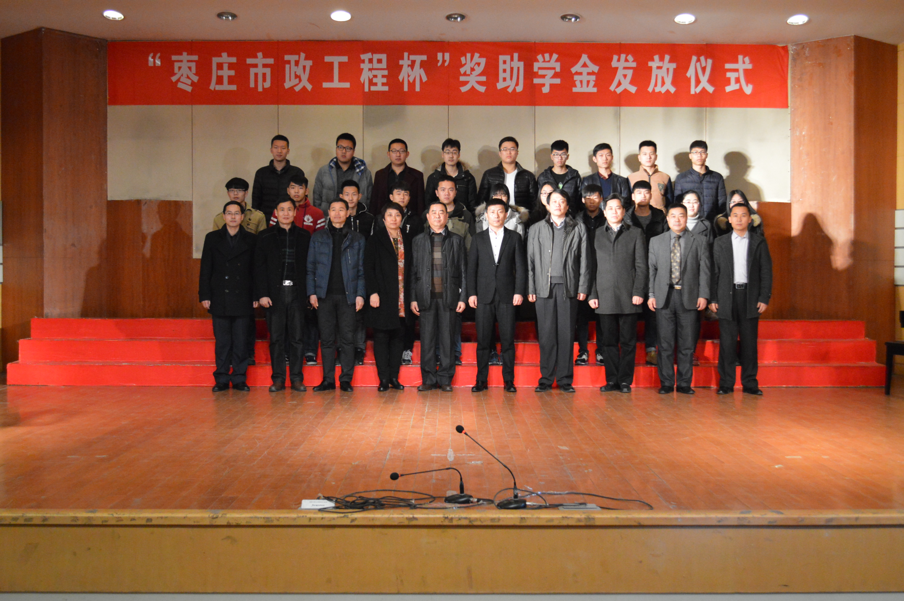 “枣庄市政工程杯基金”旨在帮助贫困大学生完成学业,由枣庄市政工程股份公司出资赞助4万元,用于奖励学习成绩优秀和家庭经济困难的学生。经过学院和企业认真审核,最终确定二十名品学兼优的学生作为本届“枣庄市政工程杯”奖助对象。