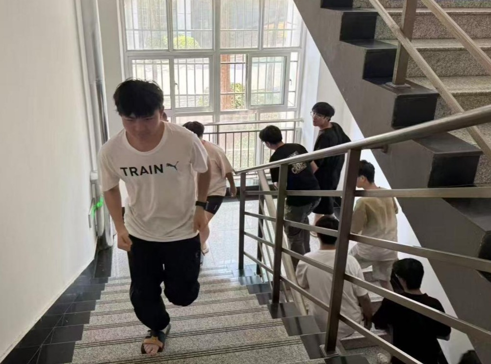 活动伊始随着消防警报声骤然响起,演练正式拉开帷幕。各楼层负责人员迅速到达指定岗位,宿舍内的学生们在指挥引导下,迅速弯腰低姿,快步按照预定疏散路线,及时有序地从宿舍疏散到安全场地。整个疏散过程井然有序,全体学生在短时间内全部安全撤离。最后,各班级负责人迅速清点人数,确保无一人遗漏。